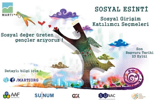 Martı, AB-Gençlik Programı Eylem 1.2 için hazırladığı “SOSYAL ESİNTİ” isimli proje için, katılımcı olarak sosyal girişim fikri olan, sosyal değer üreten gençler aramaktadır. 3 Ekim’de başvurusunun yapılacağı projeye, sosyal girişim fikri üreterek dahil olma şansı yakalayabilirsiniz. Proje ekibine seçilen sosyal girişimciler, girişimcilik eğitimlerinden ve Londra’daki faaliyetlerden yararlanabilecekler.
